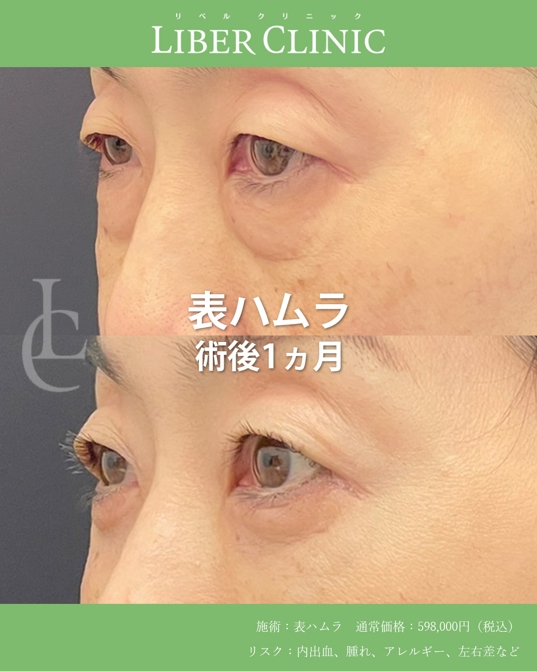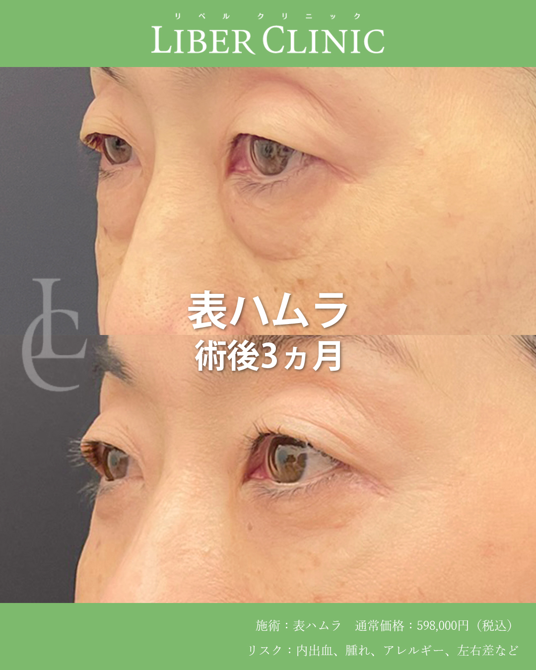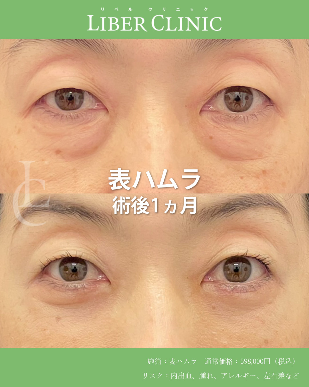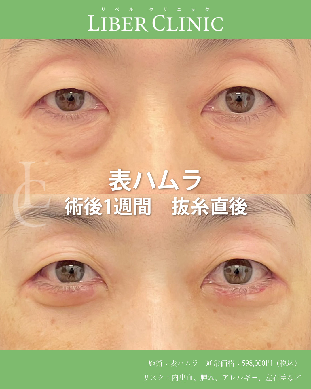 表ハムラは皮膚を切開しつつ、クマの原因であるティアトラフを剥離し、その隙間に膨らみの原因である眼窩脂肪を固定してクマを改善する術式です。